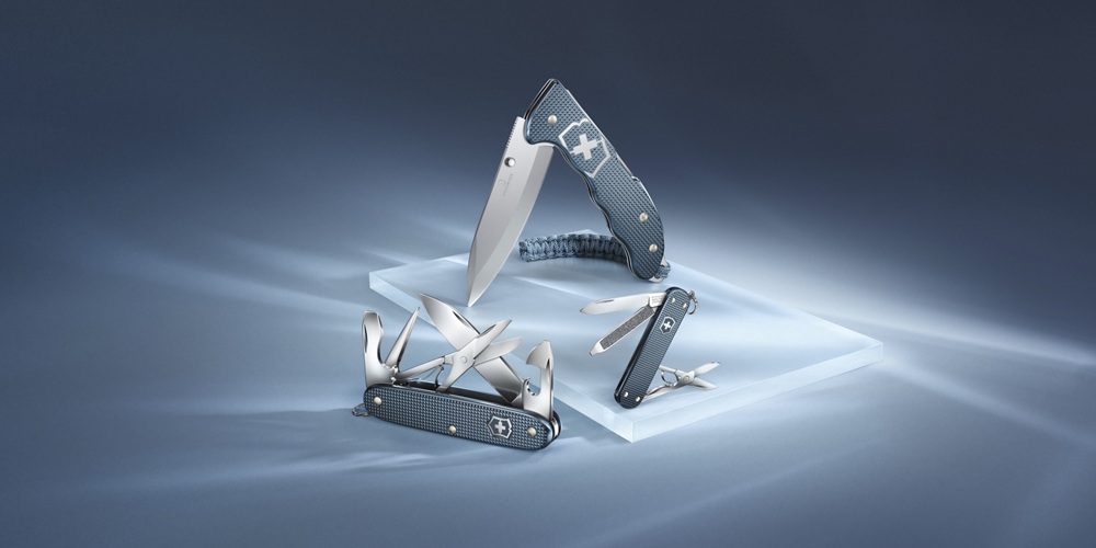 每把刀具均采用高品质氧化铝刀柄面,经冲压成型、浮雕打磨,再以独特的冰川蓝阳极氧化工艺精心着色。融合精湛的瑞士工艺与实用功能,该系列专为追求睿智设计与可靠性能的鉴赏家与日常使用者打造,在收藏价值与生活实用之间找到绝佳平衡。