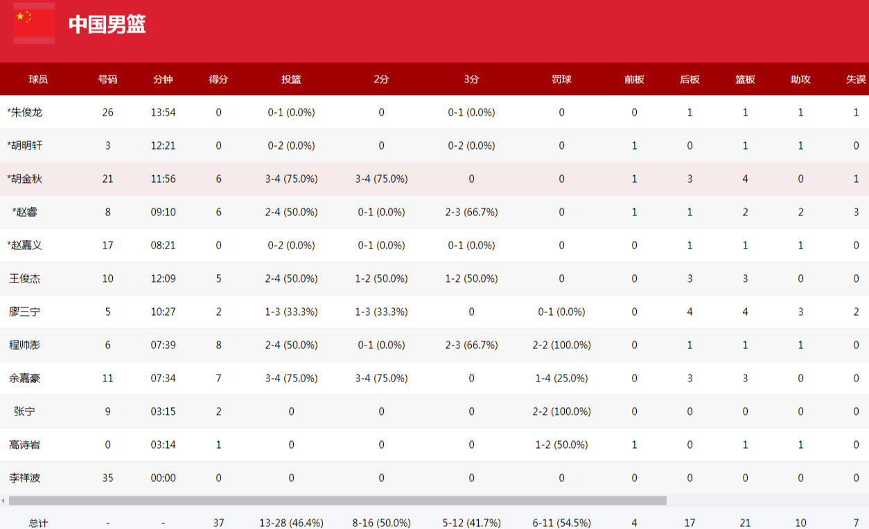 半场中国男篮37比22领先委内瑞拉,除了李祥波,其余11人全部登场。对手没篮和轮换阶段体型不够,我们做好失误控制和篮板球保护就行。半场还是有8次失误,偏多。王俊杰这个身板+投射确实很香,期待他和小曾共同撑起锋线。
