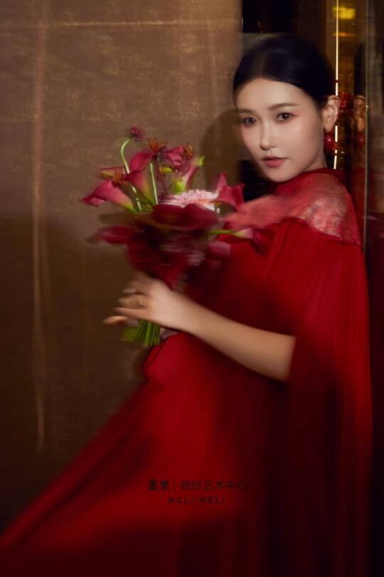 自己做的,用迎亲那套八达晕的余料做的。回门前的一天刚送到我手里,效果还是挺满意的,尤其裙摆甩起的瞬间太霸气了!