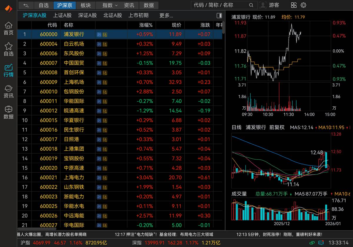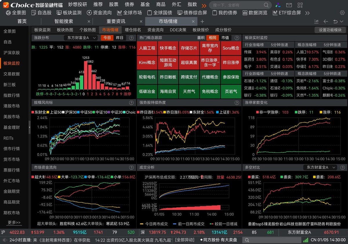 到了盯盘时段,Mate XTs的优势更明显:办公室有六块屏幕,但在路演或会议间隙,我需要的不是下单,而是保持对市场结构和情绪变化的感知。展开手机,鸿蒙版东方财富支持一屏多窗,同时监看自选股列表、热门板块异动以及沪深K线图,能迅速捕捉到板块的异动与联动,比如某龙头股拉升时,其所在的小板块是否也有跟随,这比在狭小的手机屏幕上不停切换标签页直观高效得多。