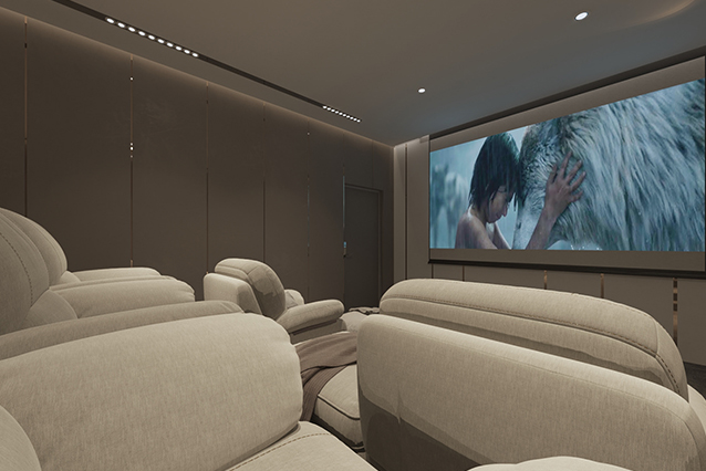 家庭影院前墙作为声音与画面的核心承载区域,其处理效果直接影响观影时的音质纯净度与画面沉浸感。从声学原理到视觉设计,前墙处理需兼顾声音反射控制、低频管理、屏幕安装与整体美观性,是构建专业级家庭影院的关键环节。 前墙的声学处理核心在于平衡吸音与扩散。屏幕背后的墙面若为硬质材料(如混凝土、石膏板),会形成强烈的第一次反射声,导致声音浑浊、定位模糊。此时需在屏幕两侧及上方安装吸音模块,通常选用聚酯纤维吸音板或玻璃棉板,这类材料对中高频(500Hz-4kHz)吸收效果显著,可有效减少反射声干扰。但需注意避免过度吸音,否则会导致声音干涩、缺乏活力。因此,在吸音模块中可嵌入木质扩散体,其不规则表面能将声波打散,使声场更加均匀,尤其适合提升环绕声的包围感。 低频管理是前墙处理的另一重点。家庭影院中,低音炮通常放置在前墙附近,而低频声波(20-200Hz)波长较长,易在墙角堆积形成驻波,导致低音浑浊、层次感缺失。针对这一问题,可在前墙与侧墙的交界处安装低频陷阱,其内部采用亥姆霍兹共振器结构,通过特定腔体设计吸收特定频率的低频能量。例如,针对50Hz驻波,可设计腔体容积为0.5立方米的低频陷阱,其吸收峰值恰好覆盖该频率,从而净化低音表现。 屏幕安装方式与前墙结构密切相关。若采用透声幕(如编织幕或微孔幕),需确保屏幕后方无障碍物,且音箱位置与屏幕中心对齐,以避免声音与画面错位。对于固定式框架幕,需在前墙预留足够深度(通常15-20厘米),以便安装隐藏式音箱。此时,前墙可采用双层结构:外层为装饰面板(如木质格栅或吸音软包),内层为隔音棉与龙骨框架,既保证美观性,又提升隔音效果,防止声音外泄干扰邻居。 视觉设计方面,前墙需与整体装修风格协调。若追求简约风格,可采用白色吸音板与黑色扩散体组合,形成黑白对比的视觉效果;若偏好影院氛围,可安装星空顶或暗光灯带,营造浪漫观影环境。但需注意,灯光亮度需控制在10lux以下,避免干扰画面显示效果。 家庭影院前墙处理是一场声学与美学的平衡术,需从反射控制、低频管理、屏幕安装到视觉设计全面考量。中乐影音凭借多年行业经验,形成了一套科学的前墙处理方案:通过专业声学测试确定吸音扩散比例,定制低频陷阱解决驻波问题,并结合用户审美需求设计个性化装饰方案,让每一面前墙都成为提升观影体验的“隐形功臣”。