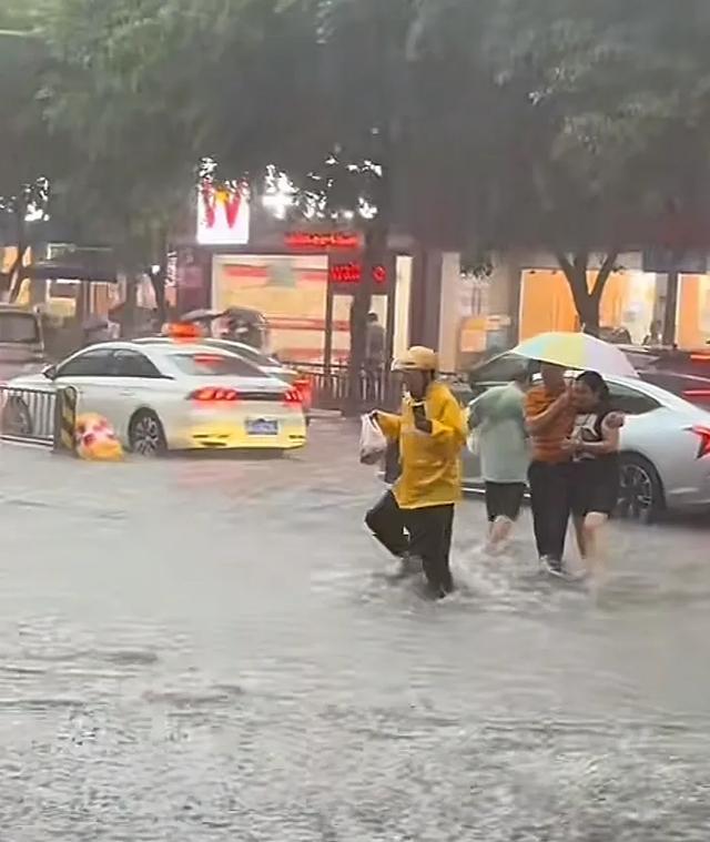 不过大哥应该是多虑了,他忽视了他的前方整条街全部都是泡水车,救援的话可能需要一个时间