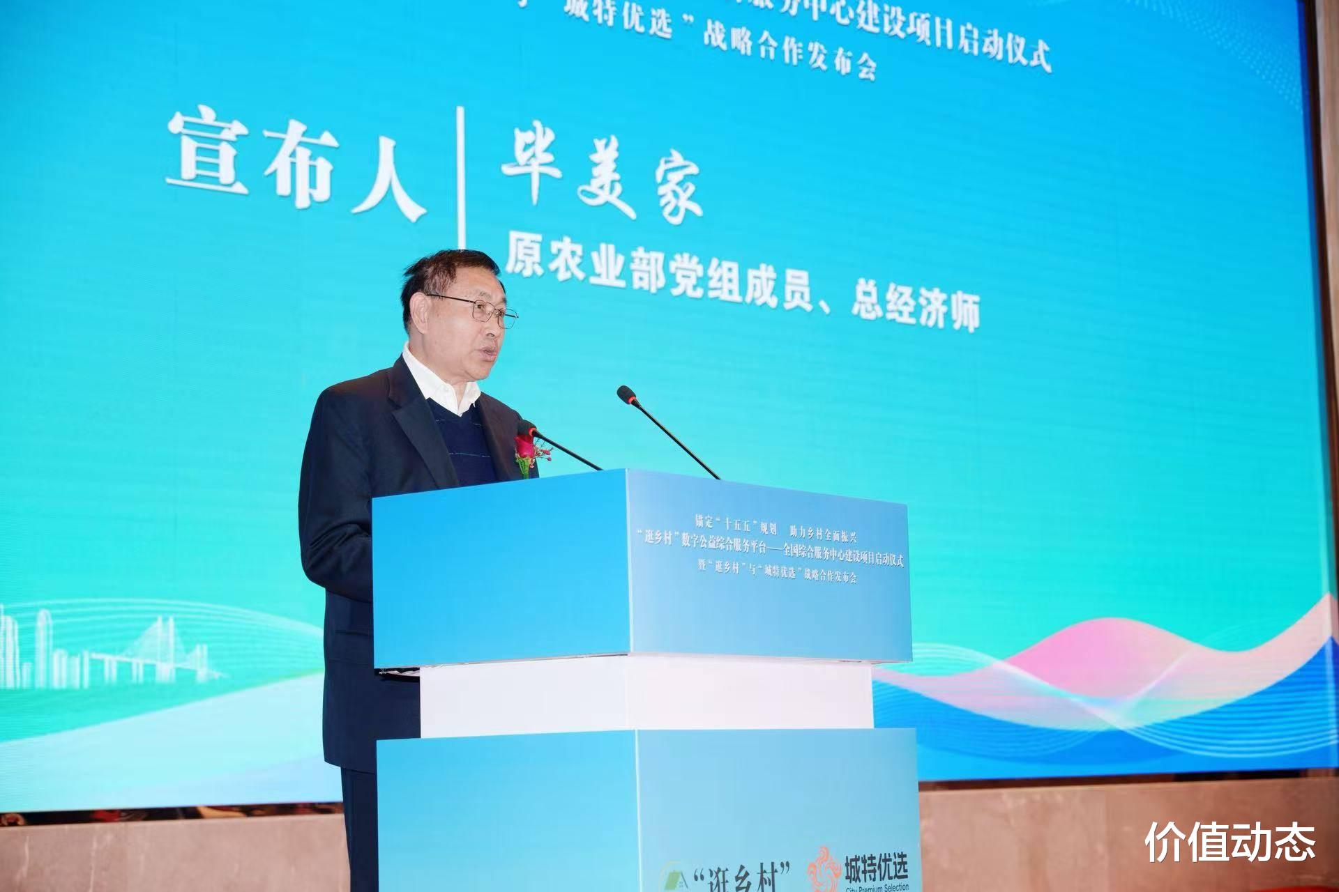 原农业部党组成员、总经济师毕美家宣布仪式正式启动,并与中国经济改革研究基金会秘书长谌利民、中央宣传部出版局原副局长、一级巡视员刘建生、中央统战部培训中心原副主任王峰辉、中国经济改革研究基金会副秘书长晁亮、台州市政协副主席叶玲君、台州市农业农村局副局长罗丙照、台州市电子商务协会会长瞿建军、浙江城特科技管理有限公司董事长林辉一同启动按钮。