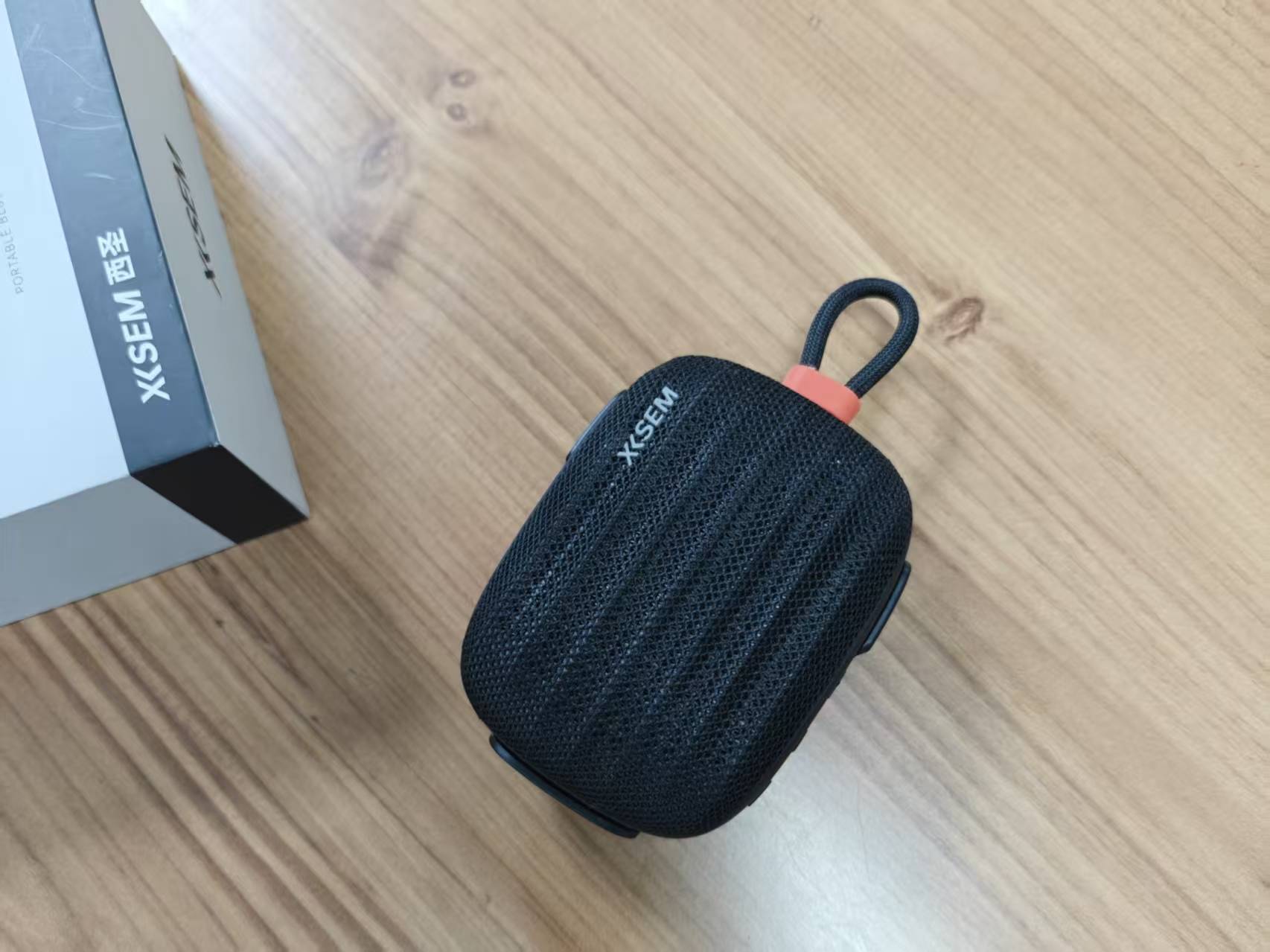 什么牌子音响音质最好?这款小音箱的外观设计很有特色,织物拼色的外壳让它看起来既有现代感,还配有挂绳和扣环,使用时可以轻松挂在背包上或者树枝上,随时随地都能带着走。