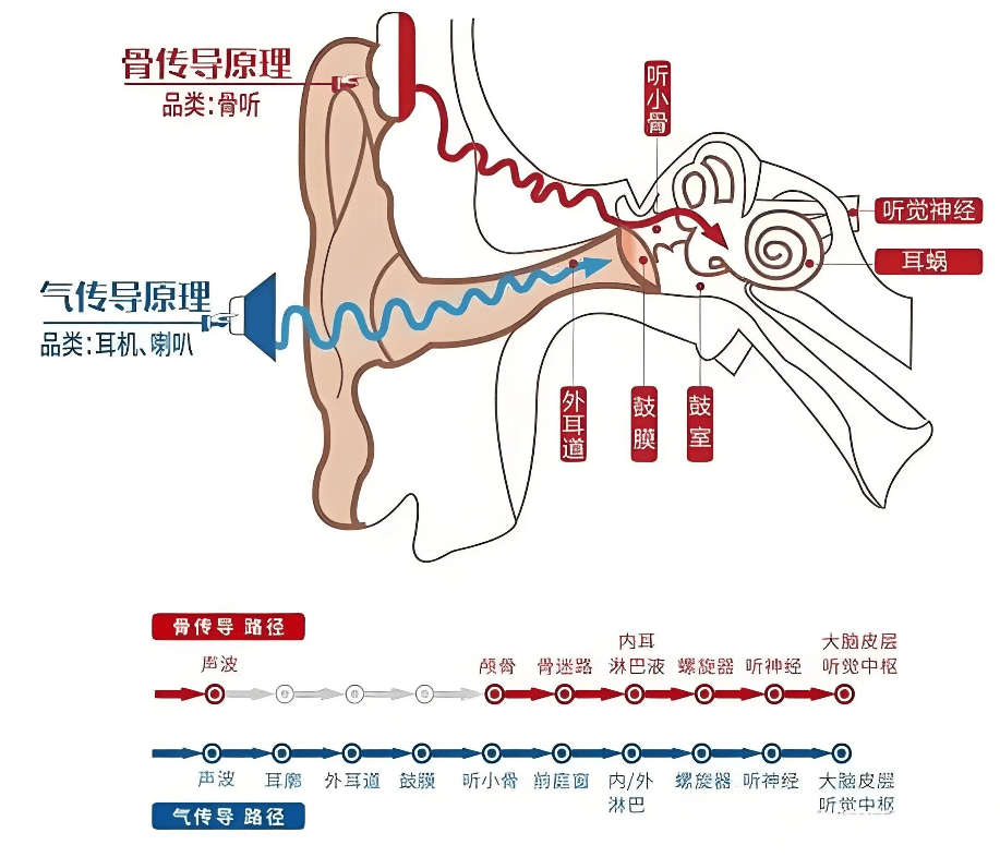 在正式推荐之前,先简单说说开放式耳机的工作原理。开放式耳机并不是把声音塞进耳道里,而是通过耳机单元将声音定向传递到耳朵附近,利用空气传导(部分产品会结合骨传导或定向声学技术),让声音自然进入耳朵。这样一来,耳道可以保持开放,佩戴更舒服,也能随时感知周围环境,但对调音和防漏音技术的要求也更高。