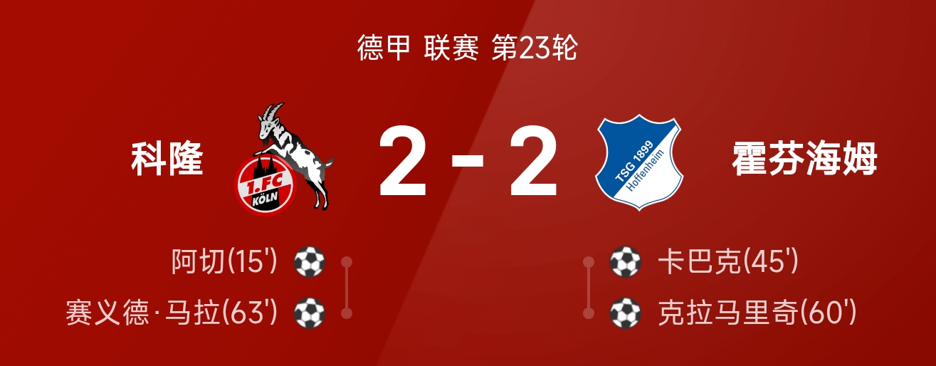 科隆2-2霍芬海姆