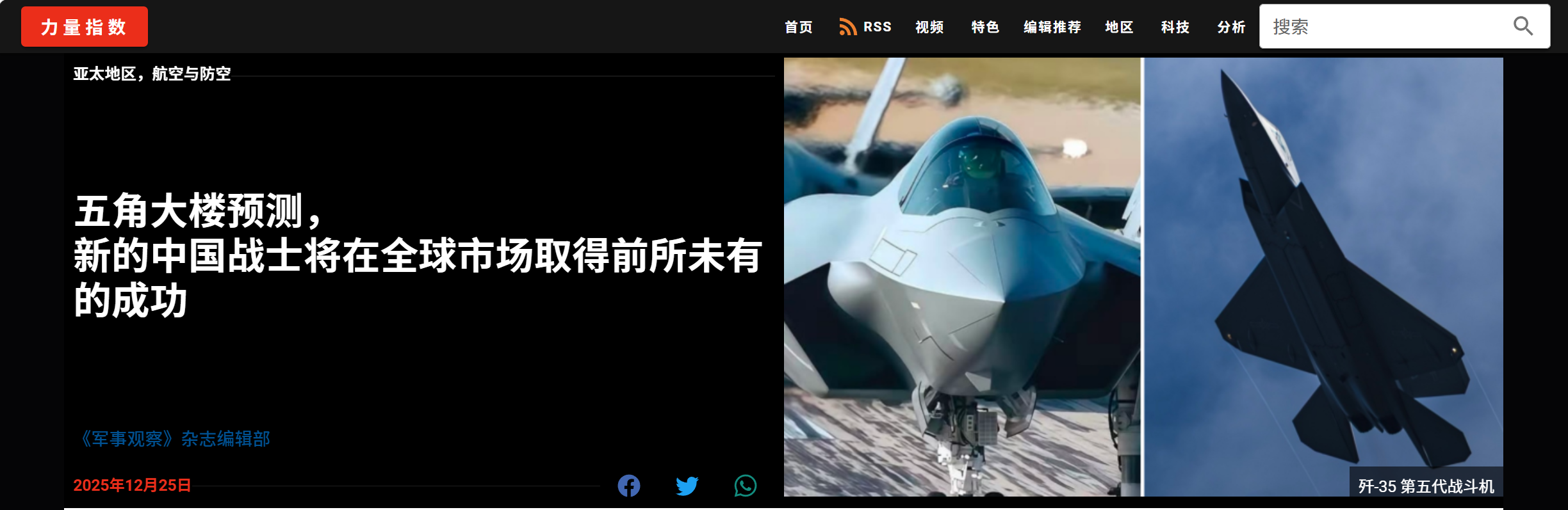 12月23日,美国战争部(原五角大楼)发布了所谓2025年度《中国军力报告》(年度国会报告)。其中,对于中国出口战斗机的核心评估,主要集中在以上三款机型。
