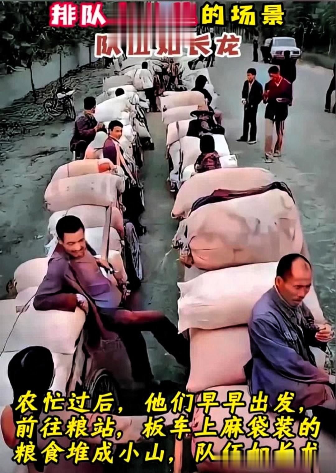 我记得每年大概都有一个时间点,事先讲好用谁家的拖拉机,麦子都用编织带装好,一袋一袋的麦子扔到拖拉机上,几家一起去镇上交公粮,至今我都还记得。