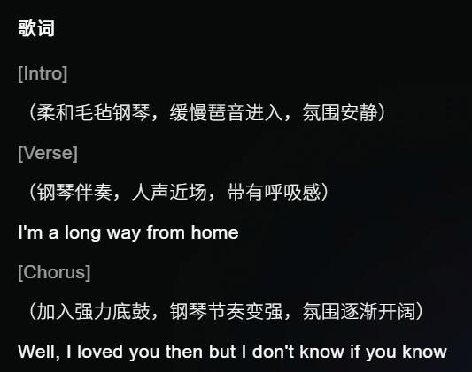 之前我用Suno生成这样长段的中文,我往往会用一个小技巧,就是如果模型识别不出来某一个比较复杂的中文字,就换成拼音,或者换成一个更简单的同音字。
