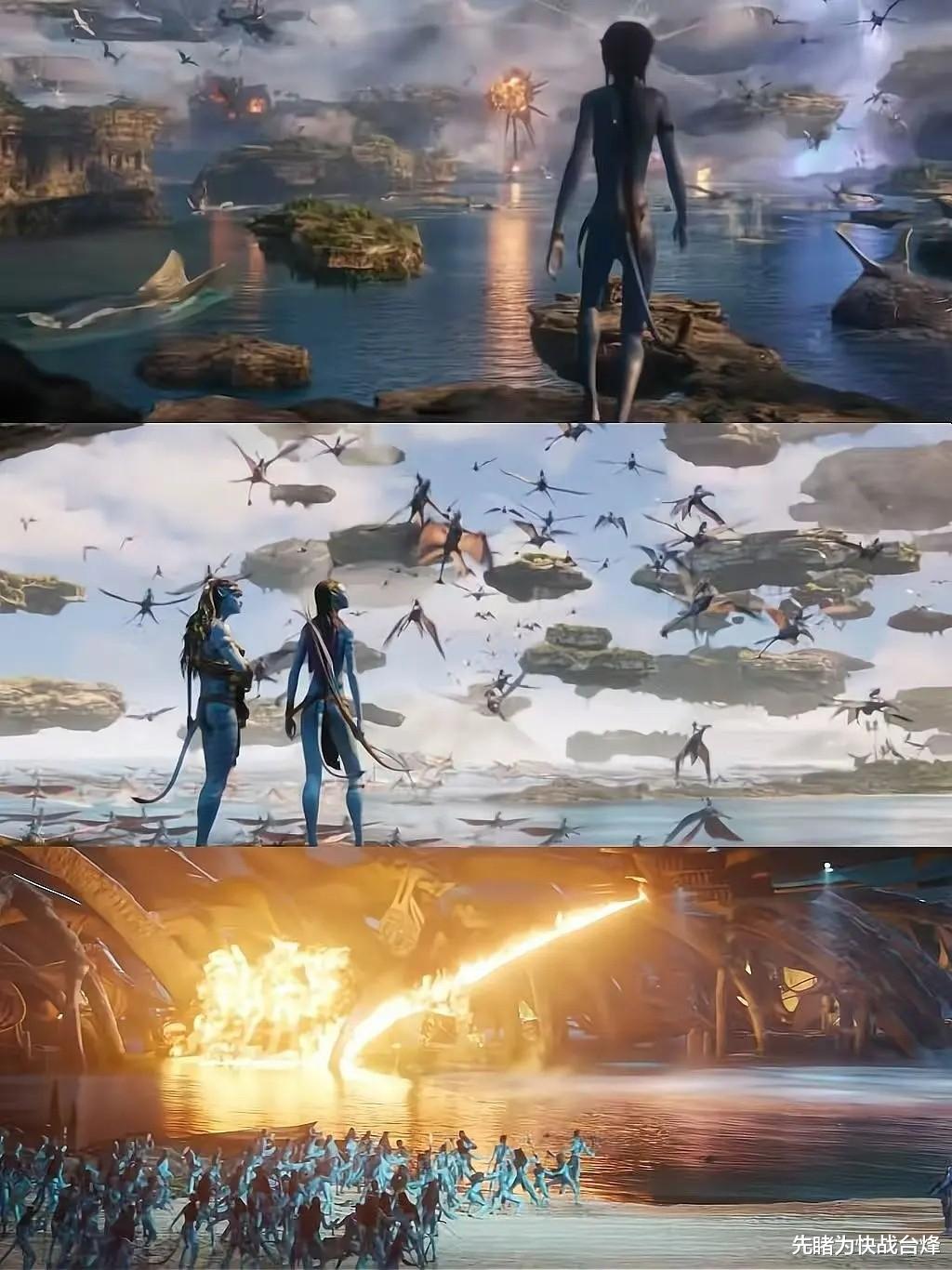 不仅故事更扣人心弦,《阿凡达3》在视效方面也是再攀高峰,海陆空三线大战堪称影史级名场面: