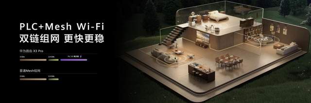 华为路由 X3 Pro 日照金山此次带来的核心大招是第三代PLC千兆组网,支持PLC+Mesh混合组网。
