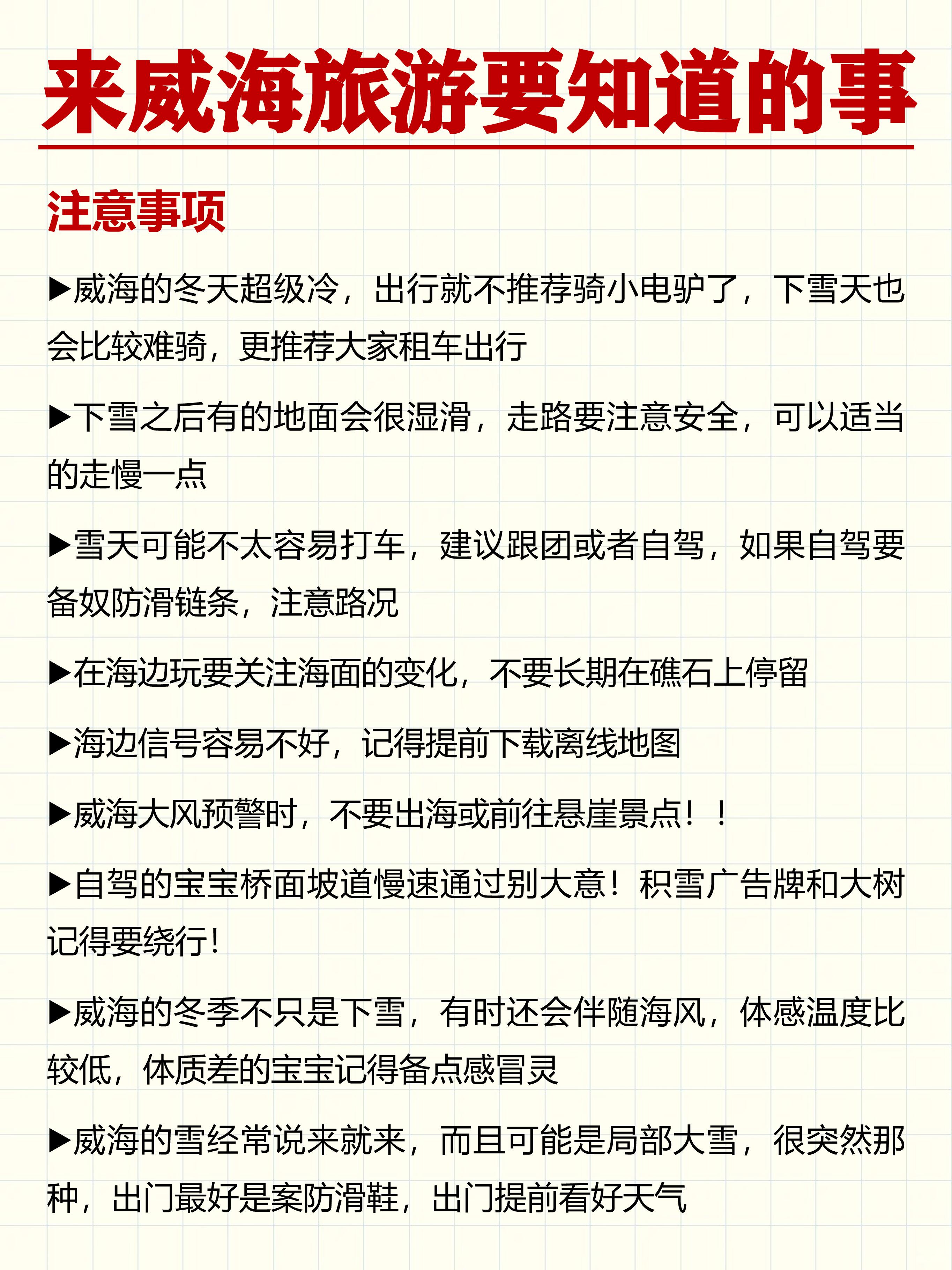 冬季计划来威海旅游的宝子们💝一定要做好攻略再出发‼毕竟,漫无目的真的很容易绕路~给大家整理了一份简单清晰的懒人攻略,希望能对即将来威海旅游的你们有所帮助