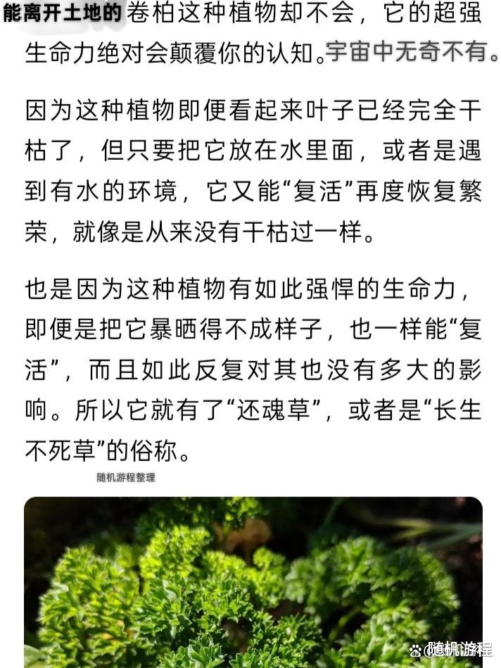 或许对于植物类的生物最大敌人就是遇到“火”逃不掉的火劫。这就像我们知道地球也有接近长生不死状态可以离开土地的“卷柏”一样。一种植物“卷柏”,这东西理论上就是长生不死状态,古人又叫“九死还魂草”,因为只要不被火烧化,就算最后剩下一点枯枝,再需要水就会起死回生,同时它本身是无性繁殖的。还有现代科学发现在海中反复循环生长的“灯塔水命”也差不多。想一想,宇宙就是这样,大千世界无奇不有,很可能就有这种植物特性的类人生物,或许它才是宇宙中最高进化物种之一!
