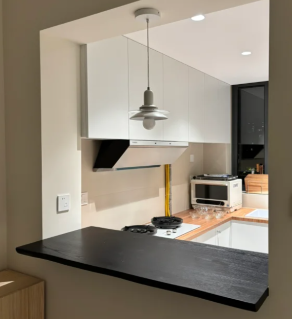 发现大多数小户型厨房做了这个设计之后都变得宽敞很多,她才决定在自己家厨房也开个洞。