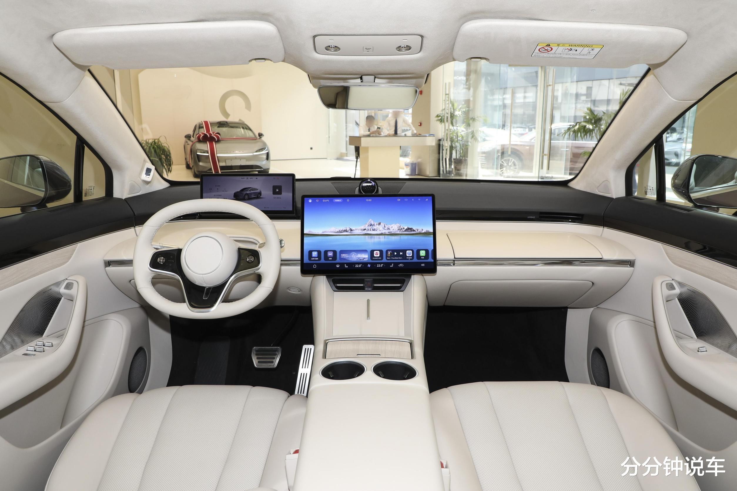 除了智驾,智能座舱也是目前大家关心的重点,也关系着用户日常的用车体验。极越01和智界R7在座舱布局上是有着完全不同风格的。极越01的风格明显更加科技和激进,其配备了尺寸达到了35.6英寸的6K屏幕,视觉效果十分出色,内置了高通骁龙8295芯片,AI算力达到了60TOPS,内存也达到了32G,除了可以满足当下的算力需求外,也给后续升级留下了冗余。