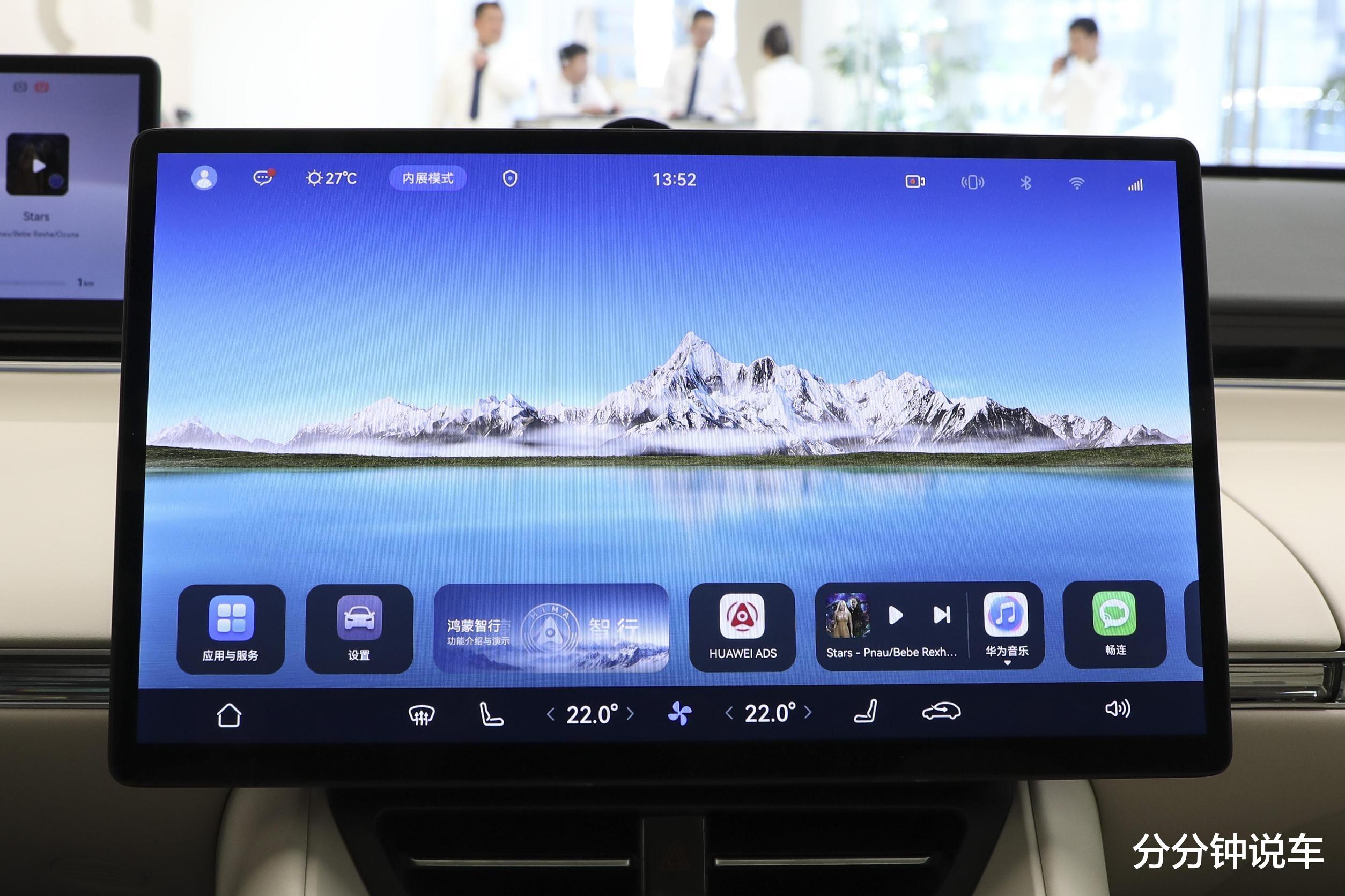 智界R7整体的内饰布局就更加传统,有着一块12.3英寸的全液晶仪表盘和15.6英寸的中控屏幕,该车采用的是华为鸿蒙OS,内置了麒麟990A芯片,内存为8G,从实用性角度来看,是足够的,但是和极越01还是会存在硬件上的差距。