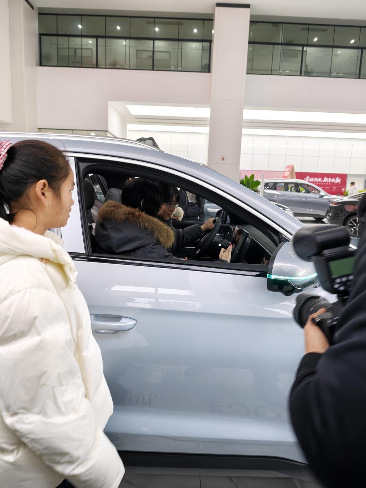 看完宋Pro DM-i的长续航版,我对它的能耗和续航念念不忘。昨天又带着家人又去了一趟4S店,这次重点体验了它作为“智能移动小家”的另一面。店里换上了一台星河米色的展车,颜色温润,很有家居感,我老婆一看就挺喜欢。