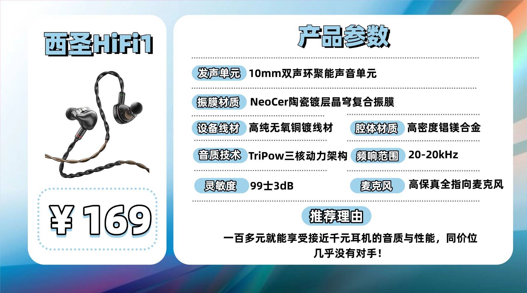 百元有线hifi耳机哪种音质好?第一款:百元性价比天花板西圣HiFi1
