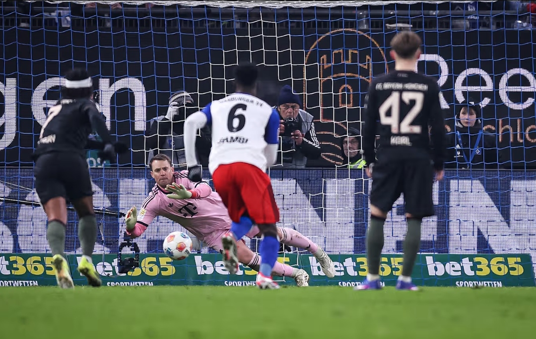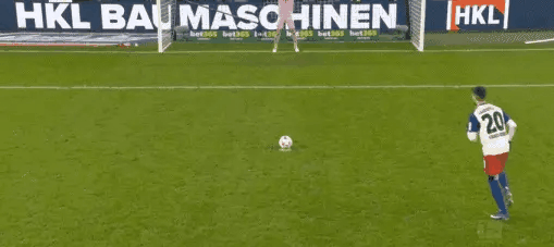 比赛第34分钟,裁判判罚基米希犯规,法比奥-维埃拉点射,汉堡1-0拜仁