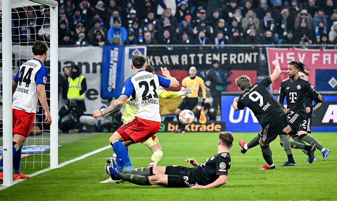 比赛第42分钟,凯恩门前转身破门,拜仁1-1汉堡