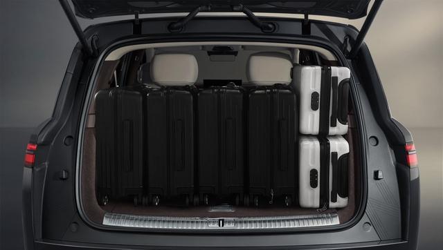 腾势N9的空间设计也非常贴心。它的长宽高分别为5258/2030/1830mm,轴距为3125mm,这样的车身尺寸带来了宽敞舒适的车内空间。通过CTB技术、超紧凑2.0T双模动力总成、空调冰箱一体化技术等整车融合技术,乘员舱空间最大化,面积达到6.41平方米。三折叠座椅设计可以一键切换多种模式,像前排影院、后排大床、四人舒享、满员出行模式等。用户还能根据场景需求随心组合。车内布局了46个储物空间,比如二排遥控器收纳槽、副驾密码手套箱等。而且采用“666”布局,全车配备6个云栖座椅,满载6人的情况下,还能轻松容纳6个行李箱(包括4个20寸标准登机箱和2个儿童拉杆箱)及6个背包,或者轻松横置放下47寸高尔夫球包,全家出行都毫无压力。