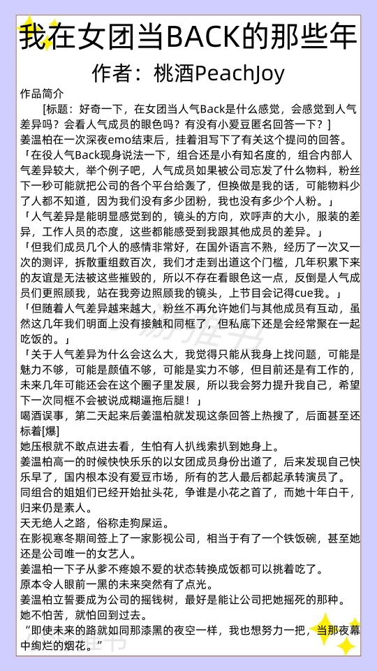 07.《我在女团当BACK的那些年》 作者:桃酒PeachJoy //字数:46w