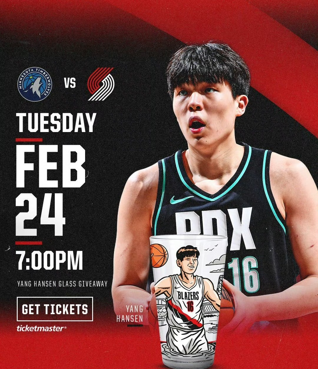 2月24日波特兰开拓者官媒发布公告,25日主场对阵森林狼的比赛,球迷入场可以获得杨瀚森玻璃杯,但本场比赛小杨依旧被下放至发展联盟。这一下真成吉祥物了,比赛可以不用打,但形象该用必须得用。