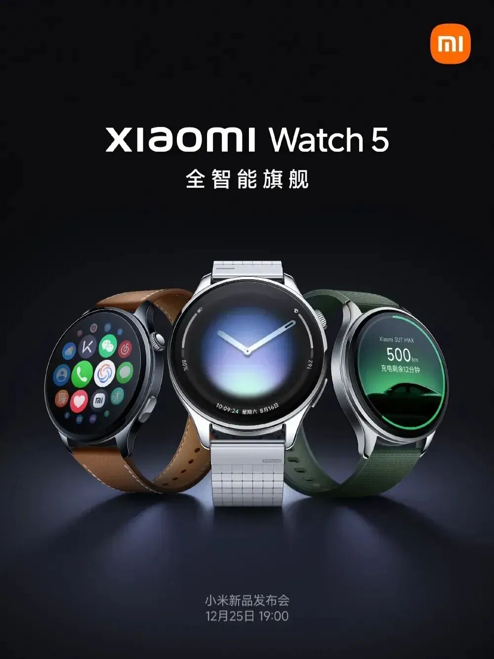 全新小米手表5也宣布,将于12月25日 19:00发布。