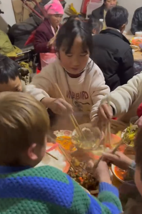 可是没有想到,这位贵州的家长就偶然拍下这个视频,说这个场面好久没看到了,他还挺开心的,一边笑哈哈地发,一边说这么多孩子在一起抢菜。