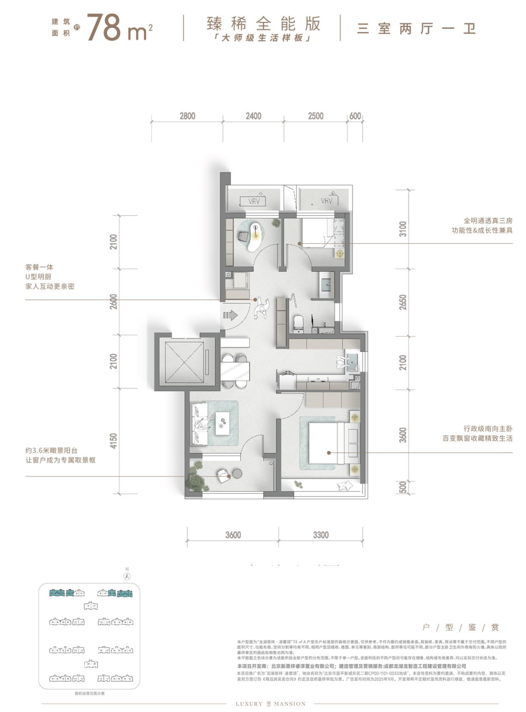 为建面78㎡/96㎡三居户型,属于上车级产品。