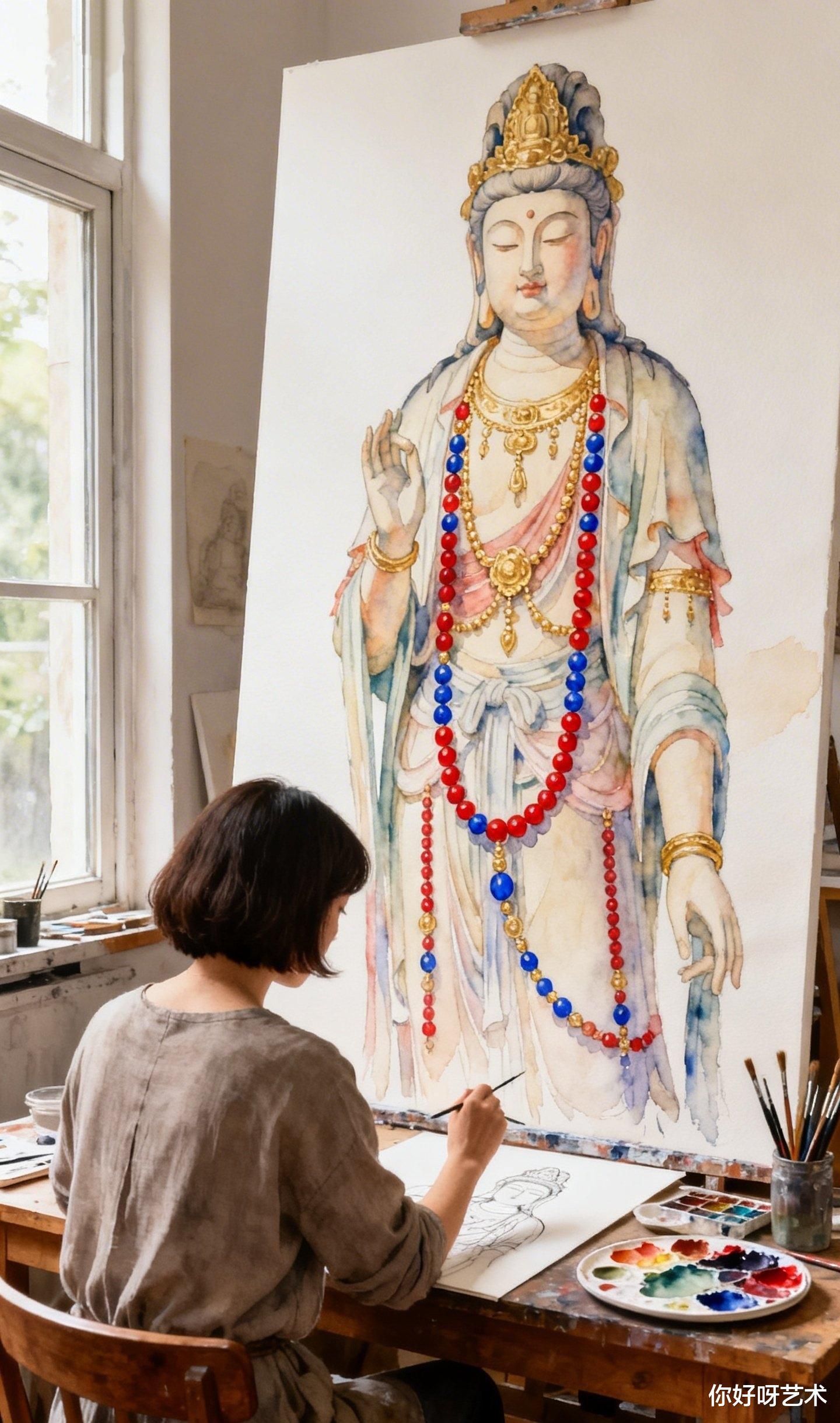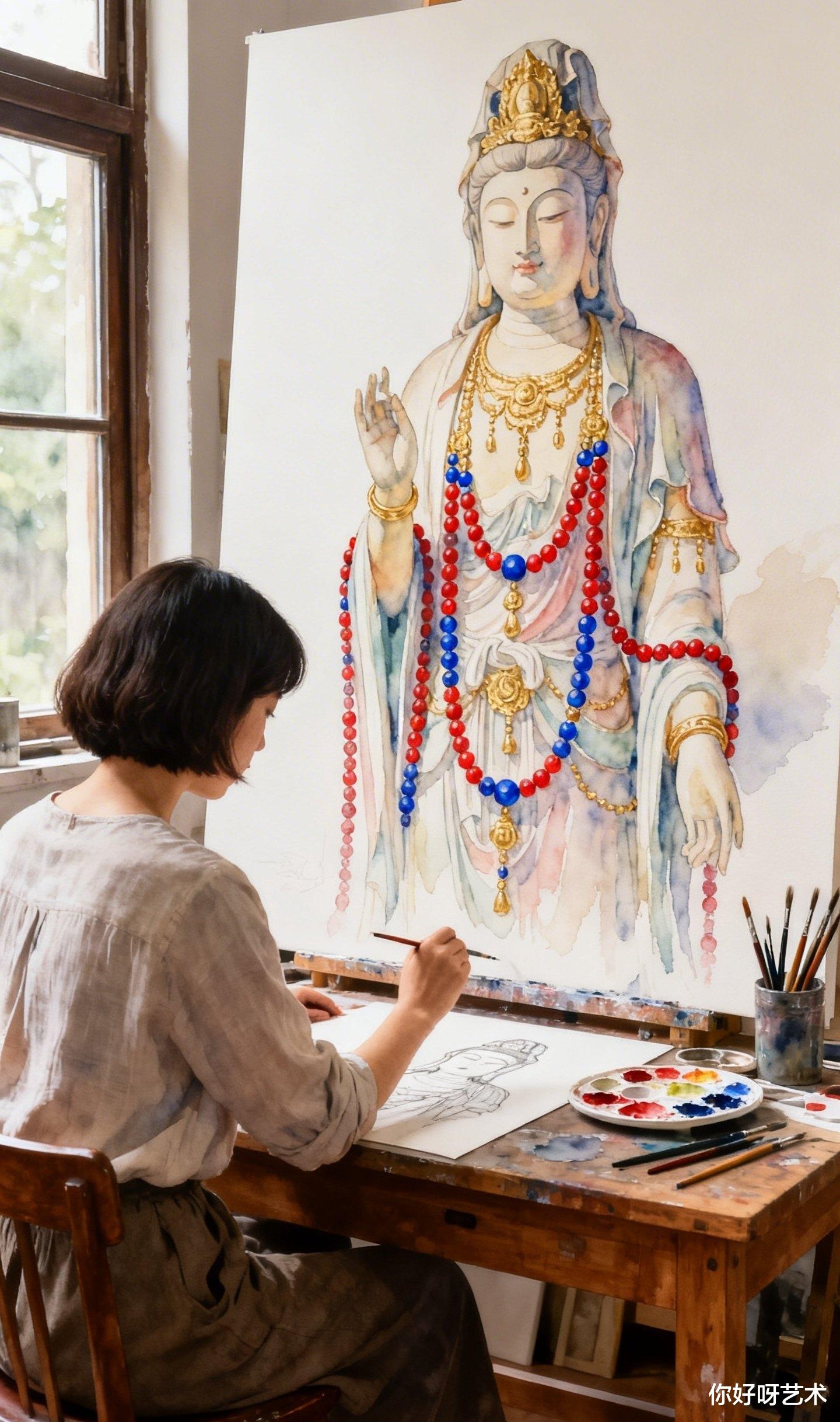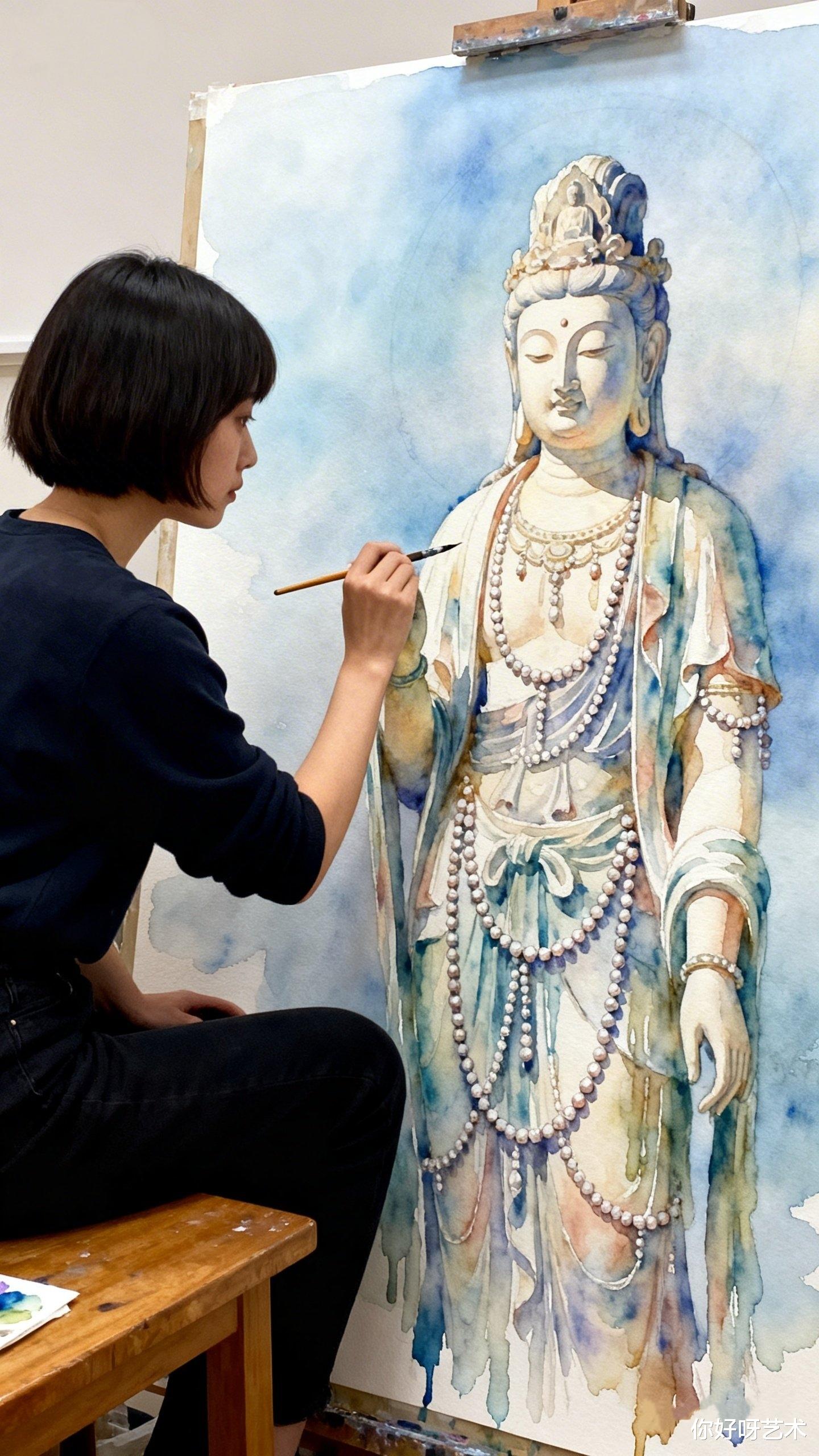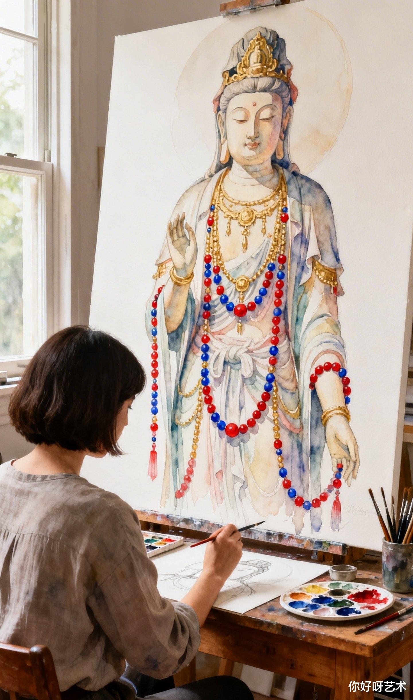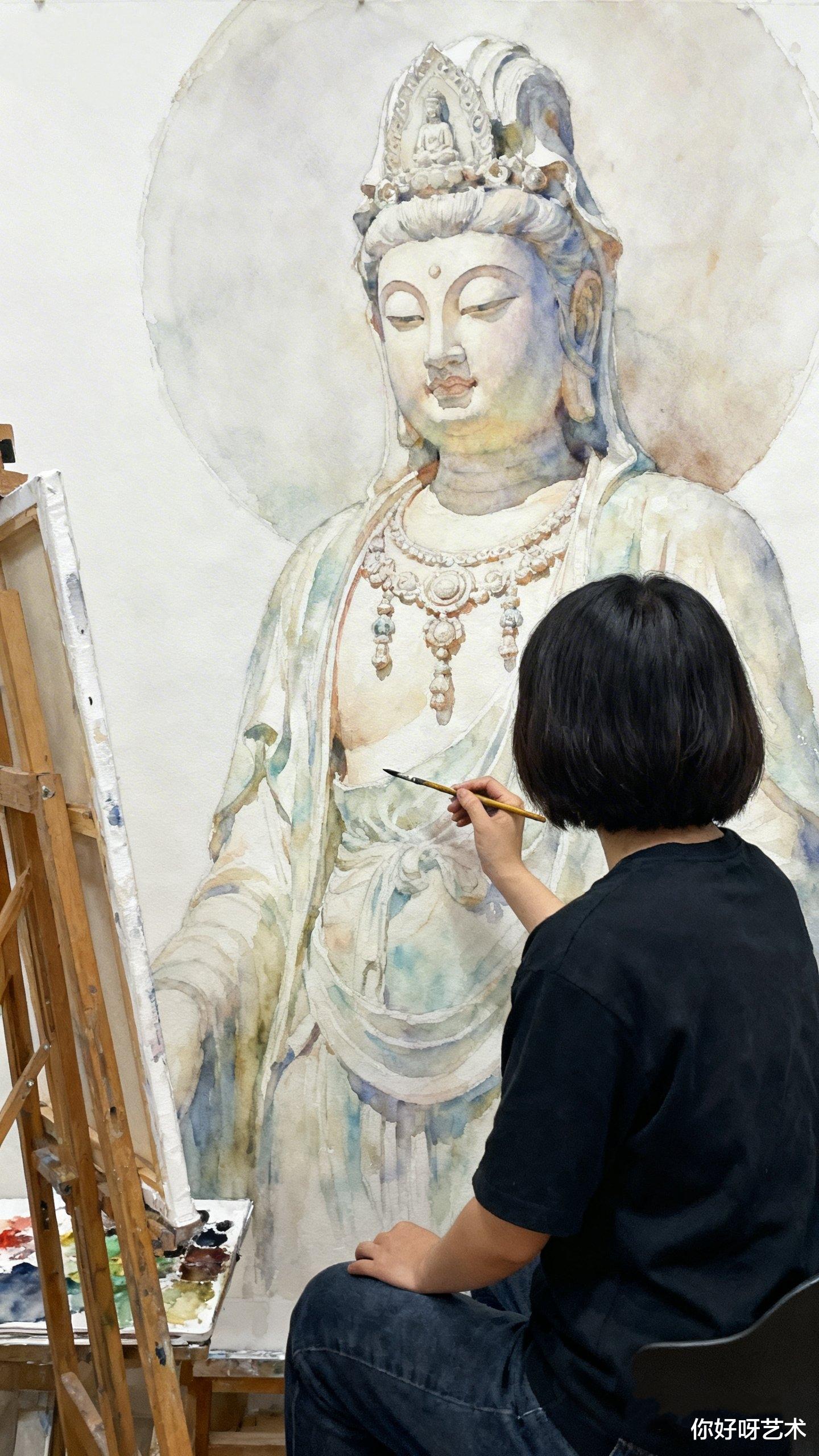 大年初一,晨光漫过老宅的飞檐,我记住了这个画水彩佛像的少女,也记住了她说的话:"佛的眼要有光,佛的手要有温度,佛的衣要有风。"