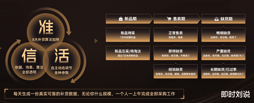 mini橙依托AI智能补货算法,覆盖新品待采、正常售卖、畅销缺货等全场景,实现补货依据、场景、算法全透明,商家可自主动态调节参数。无论规模大小,仅需一人一上午即可完成全部采购工作,有效解决忘采、缺货等行业痛点。品效激活上,通过智能调拨功能打通多门店商品流通,让无动销商品 “活起来”,帮助商家将商品动销率提升至70%以上。