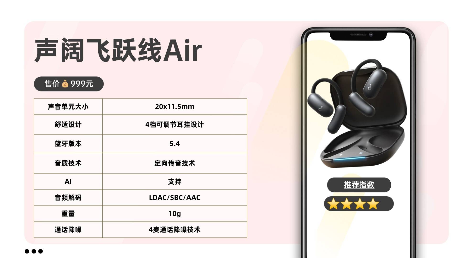 如今,OE Pro2更融合全能智慧系统,将翻译、语音对话、AI创作等多场景功能集于一身,凭借“智慧AI助手+顶级声学表现”的双重核心优势,牢牢占据开放式耳机旗舰标杆地位。