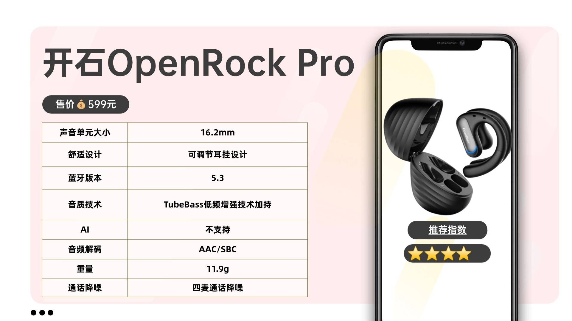 开石OpenRockPro创新设计了三段可调节耳挂,用户可根据自身耳廓灵活调整松紧,在稳固佩戴与舒适感之间实现良好平衡,长久使用不易产生压迫或负重感。耳机搭载品牌自研的定向声波导引技术,能精准控制声音传播路径,有效降低漏音,既保障个人听音隐私,也减少对周围环境的干扰。