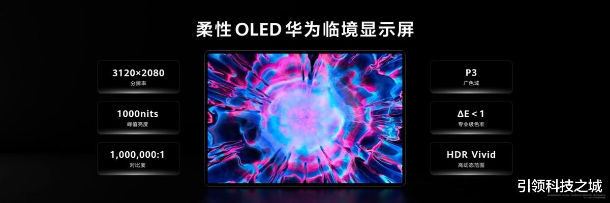 其次是屏幕方面,华为MatePad Edge的屏幕为14.2英寸柔性OLED大屏,屏占比高达94%,支持120Hz刷新率和1000nits的最高亮度,不管任何明暗环境下使用,都能享受到清晰沉浸的视觉体验。另外,得益于纳米蚀刻、磁控增透和闪点消除等技术加持,这款屏幕不惧99%的环境干扰光,且提高屏幕的增透效果,整体的光感更加通透清晰,极大的还原了屏幕色彩度,对于很多专业绘画工作者来说,绝对不容错过。