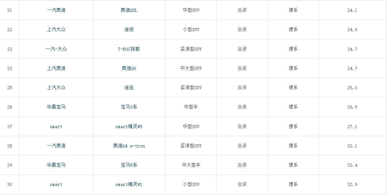 在统计榜单的中游位置,我们看到了更多熟悉的德系主力车型。华晨宝马的iX1、X5和i5等车型投诉销量比控制在合理范围内,虽然不如榜首车型那样亮眼,但仍优于不少同级别产品。北京奔驰的GLC、S级和C级等核心产品线分布在中上游位置,这些在市场上有较大保有量的车型能够保持这样的表现,说明品牌在规模化生产的同时仍能维持基本的质量标准。smart品牌的三款电动车型分布在榜单的不同位置,其中精灵#3表现相对较好,而精灵#1则略显逊色,这种同品牌不同车型的差异,反映出即使是同一品牌,不同产品之间的质量表现也可能存在差别。这个区间的车型虽然不像榜首车型那样完美,但对于大多数消费者而言,仍然是相对可靠的选择。