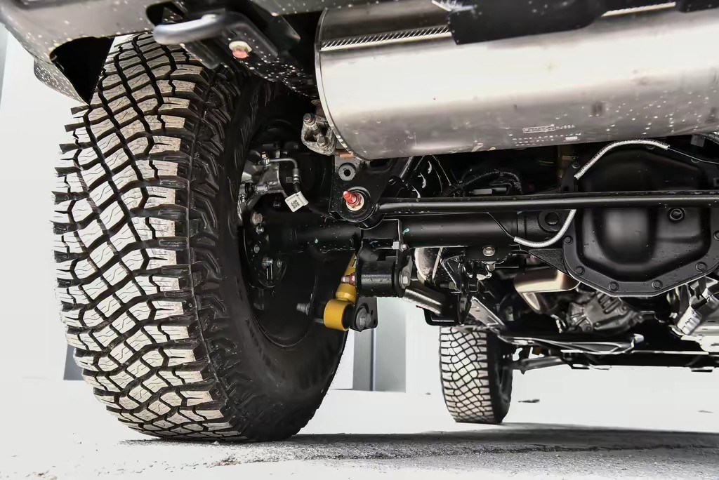 底盘福特烈马采用了前双叉臂式独立悬挂、后整体桥式非独立悬挂的结构。这是硬派越野车的经典组合,既保证了前轮定位的精准度和公路操控感,又通过结构简单坚固的后整体桥获得了更大的车轮行程和越野可靠性。在铺装路面上行驶,虽然不如城市SUV那么细腻,但那种硬朗的滤震感反而让我觉得很带劲,路感清晰,方向盘指向精准。你能感觉到车身刚性强得像块铁板,开起来非常有安全感。但我特别期待的自然是非铺装路面的表现,我把车开进郊外的河滩地,这里坑洼不平,泥泞不堪。切换到四驱模式,全系标配的后桥差速锁、低速四驱、坦克掉头和蠕行模式瞬间化身越野利器。我试驾的这台高配车型,配备了带多片离合器式中央差速器的适时四驱系统,还增加了前桥差速锁。这意味着它拥有了强大的脱困能力,在面对一个深坑时,我开启了蠕行模式,那种从容,真的是只有高级越野车才能给我这样的底气,很久没有这样的感觉了,不愧是福特烈马,值得一试。