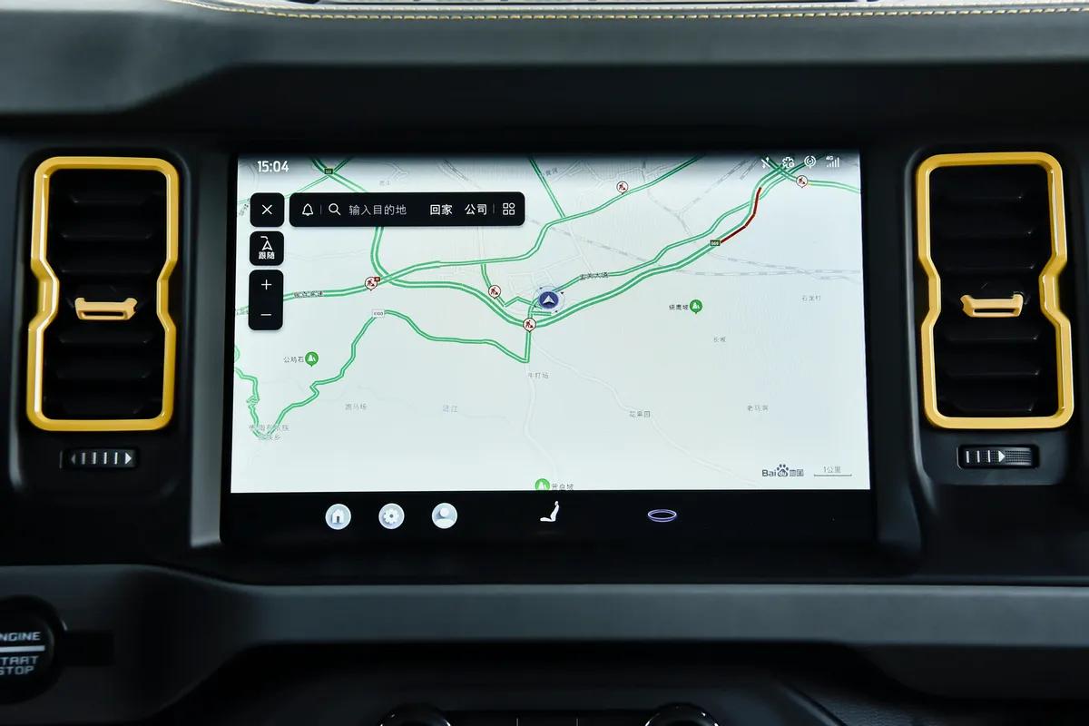 一坐进来,车内的氛围和外观保持了高度一致,呈现出一种硬朗、实用的基调。中控台采用了对称布局,线条平直,功能区划分得一清二楚。副驾驶前面那个带梯形元素的面板,看着就有种几何美感,视觉上特别稳重。真正吸引眼球的,莫过于那块12英寸的中控大屏,说实话,以前很多硬派越野的内饰简直就是“古董”,但这辆烈马居然内置了高通骁龙8155芯片。实际操作下来,SYNC车载系统的流畅度非常高,滑动屏幕、打开应用,那种丝滑感完全不输新能源车。还支持CarPlay手机互联、在线导航和语音识别控制,对于我这个离不开手机导航的年轻人来说,简直是福音。不过,作为越野爱好者,我特别满意的是屏幕下方依然保留了大量的实体旋钮和按键。空调控制、驾驶模式选择,这些在行车尤其是越野过程中常用的功能,伸手就能摸到,不用在屏幕里划拉半天。这种设计才是真正懂越野、懂安全的做法,必须给设计师加鸡腿。