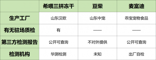 豆柴猫粮由山东中宠生产,山东中宠作为知名大厂,生产设备和基础品控体系符合国际标准,能满足生产的基础安全要求。但豆柴不对外提供第三方检测报告。