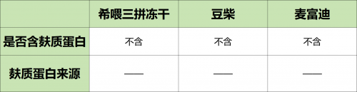 豆柴同样不含麸质蛋白,能避开核心致敏源。原料表中肉类及其制品的表述代替的是鸡肉。