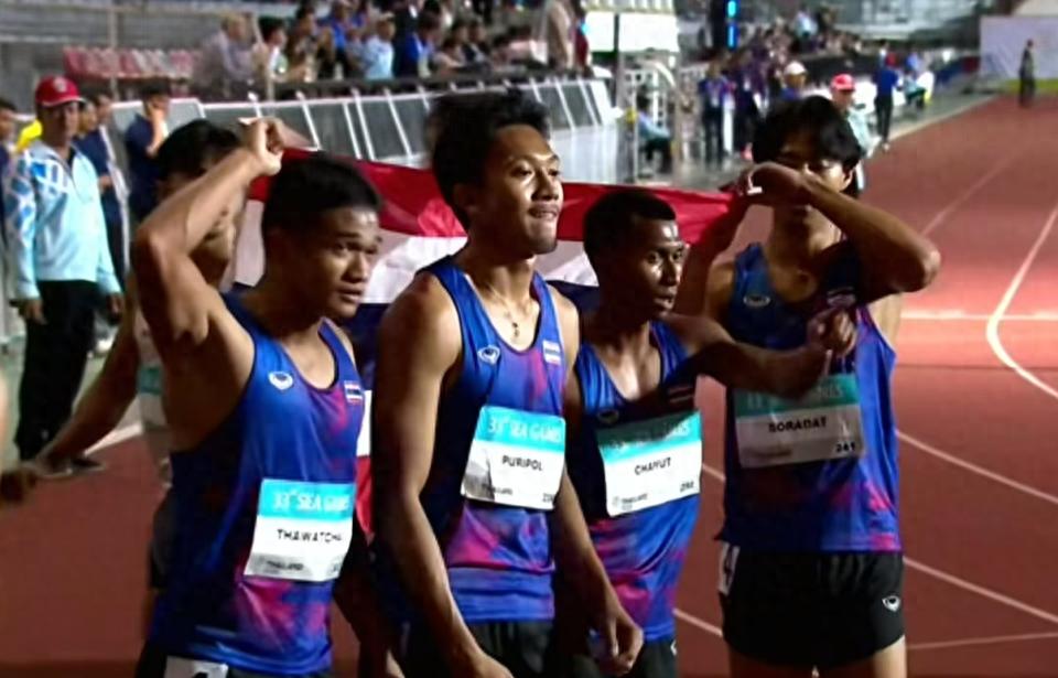 北京时间12月15日晚,第33届东南亚运动会继续在泰国首都曼谷举行,田径男子4X100米接力决赛,汶颂领衔的泰国队以38