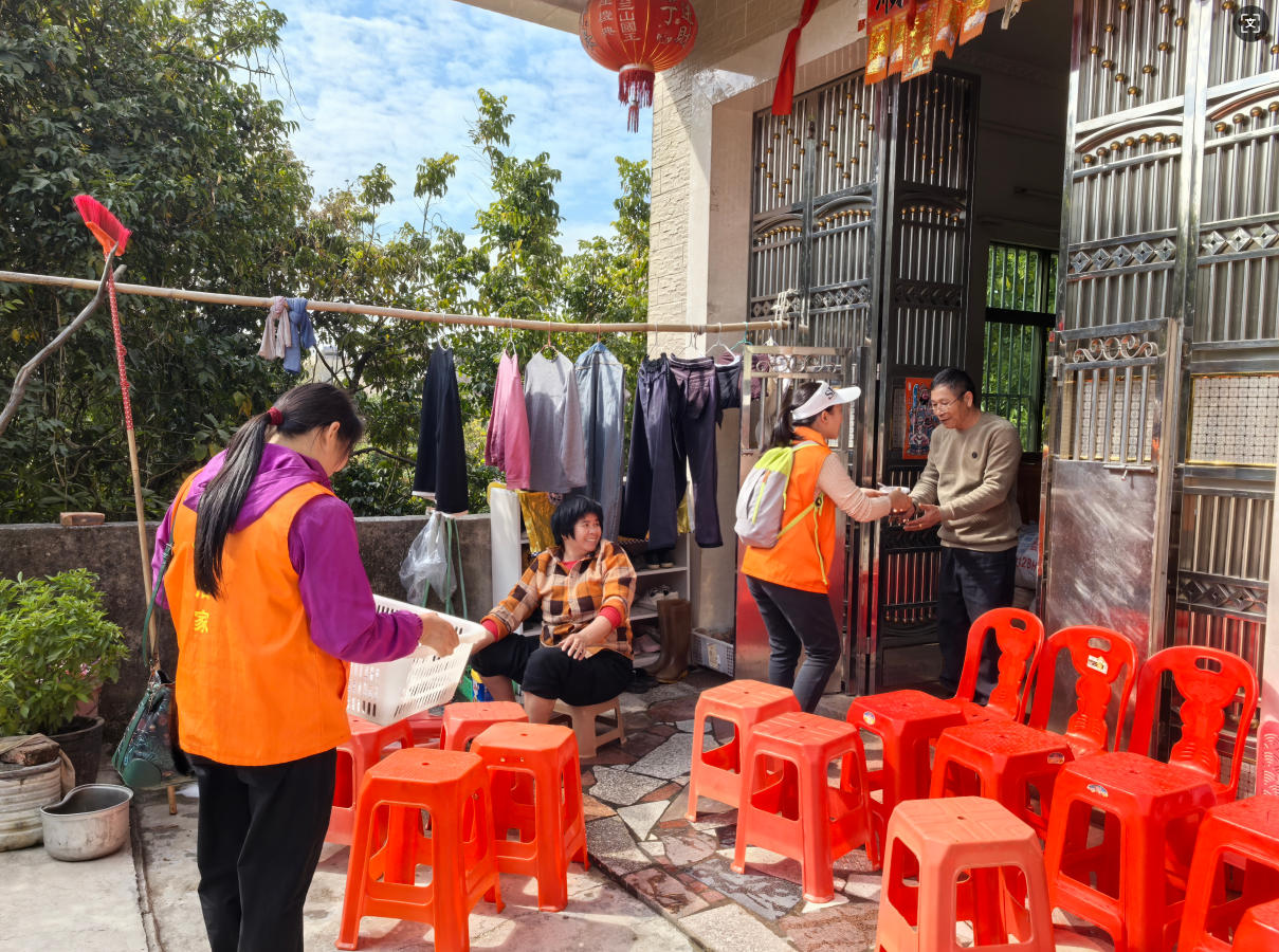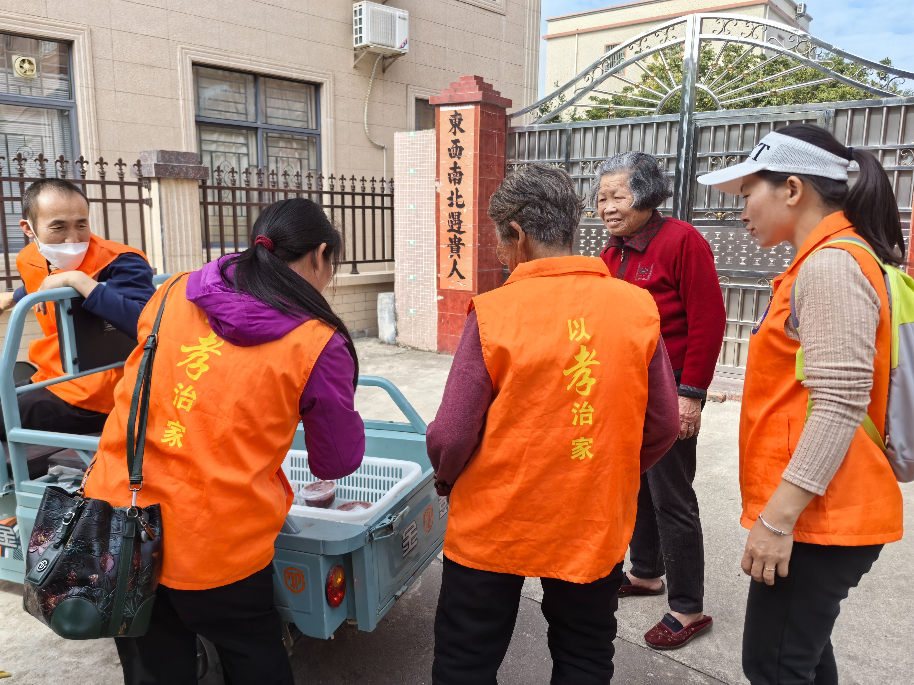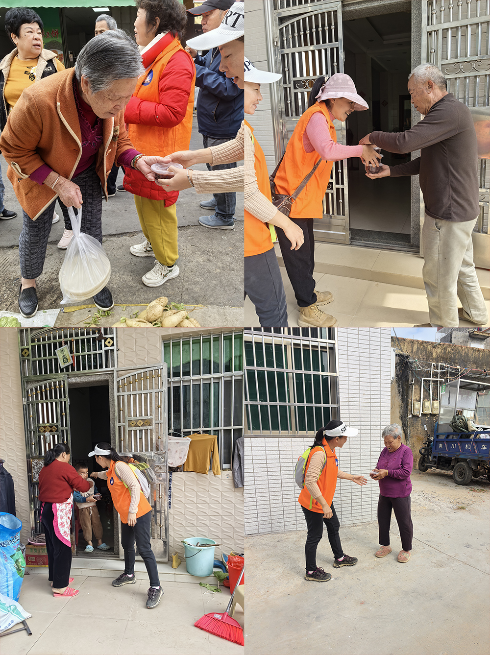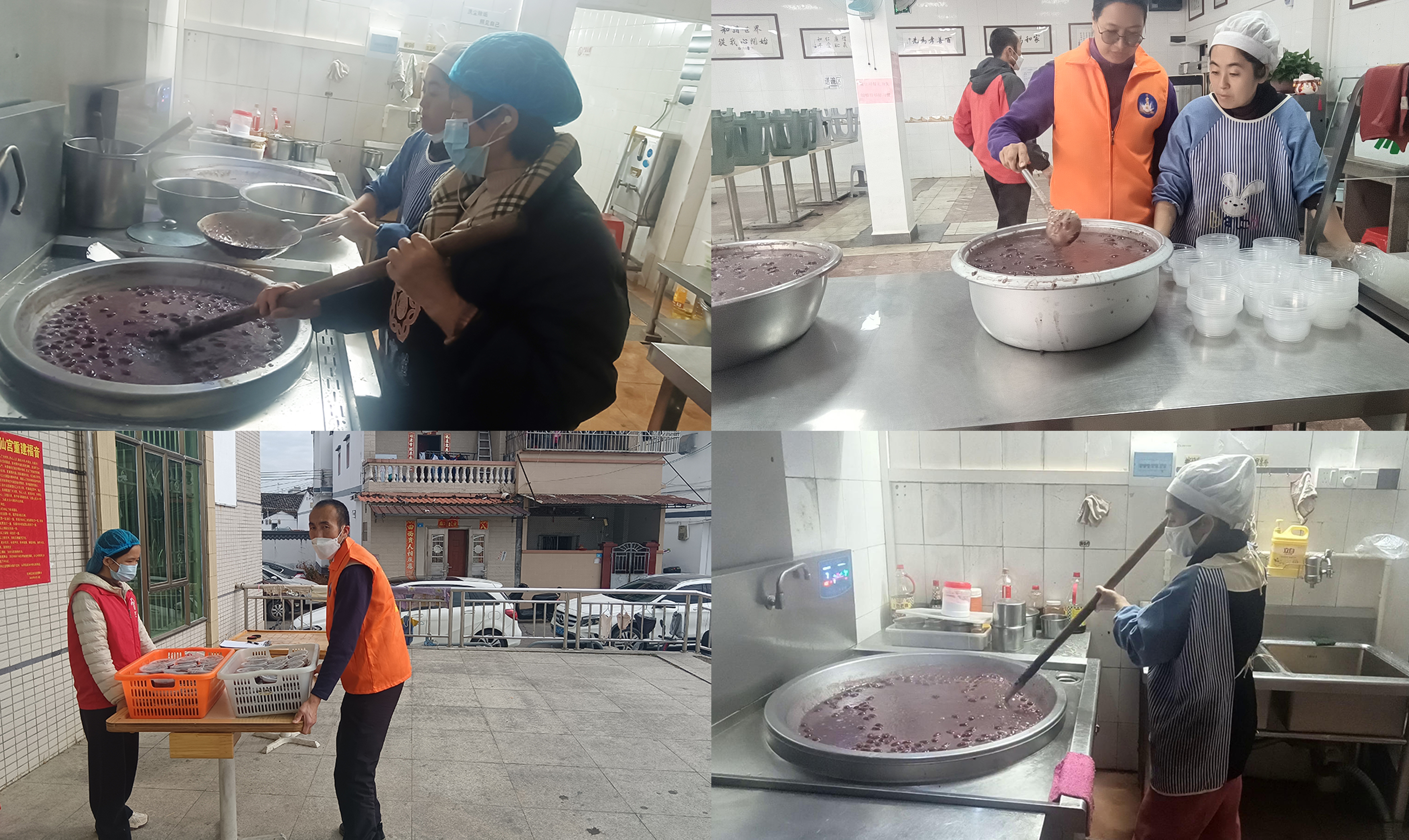 活动当天,中心主任林艺清牵头,德能学校的义工老师们早早准备好食材,精心熬制腊八粥。慢火细炖间,糯米、红豆、红枣等食材的香气交融弥漫,熬出的不仅是醇厚口感,更藏着义工们对老人的诚挚心意。大家分工协作、默契配合。家长义工组长陈瑞珺、副组长庄碧娴带领家长义工们将熬好的腊八粥分装成碗,带着满满的祝福奔赴稔山镇范合村、菜市场及汉塘村,为辖区的老人们送去节日的温暖。