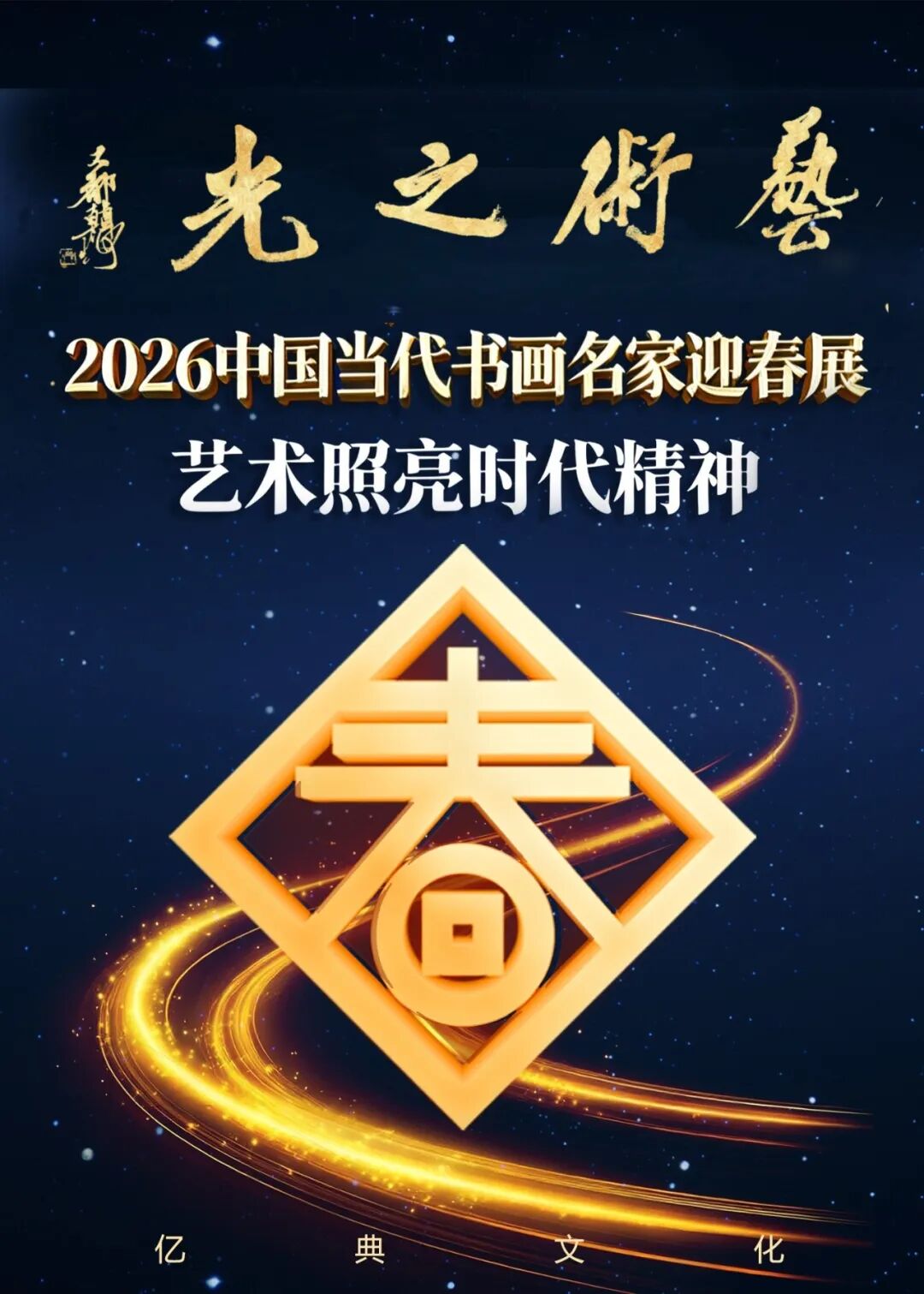 岁聿云暮,一元复始。当2026年的晨光穿透历史的云层,照亮又一个崭新的春天,我们以书画为媒,以“艺术之光”为名,诚邀诸位步入这场精神与视觉的盛宴。光,是宇宙的第一语言,是创造的原始隐喻。它驱散蒙昧,界定形状,赋予色彩以生命,更指引着文明前行的方向。艺术,正是人类心灵投射出的那束永恒之光——它照亮个体的存在,澄澈时代的精神,并试图为变幻的世界赋形,为流转的时光驻影。本次展览以“艺术之光”为主题,正是为了致敬这一古老而崇高的使命,并集中呈现当代中国书画名家们如何以笔为剑、以墨为镜,承续这束光,并将其折射向未来。值此新春,我们举办此展,更具深意。春,是光阴轮回中最为明亮、最具希望的刻度。“迎春”,不仅是迎接一个季节,更是以艺术之光,迎接一种生生不息的文化生机,迎接民族精神在新时代的璀璨绽放。这些作品汇聚一堂,如同一座精神的灯塔,既回望来时路上星火燎原的壮阔,更照亮通往未来浩瀚无垠的可能。让我们共同期待,这束源自东方心灵的艺术之光,在2026年的春天,绽放出更加璀璨夺目的华彩。