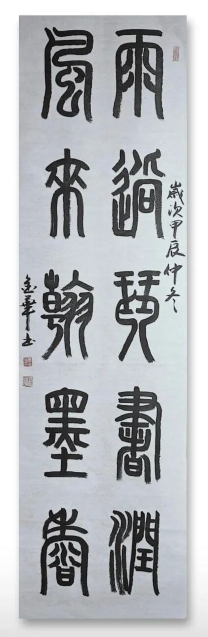 唐金华的书法艺术兼具传统底蕴与时代气象。湖湘文化的灵动洒脱,与江淮地域的厚重沉稳,在他的笔墨中交融共生。他始终坚守书法的艺术本源,在临帖与创作中不断探索。多年来,他汲取历代书法名家的笔墨精髓,又立足当代审美,赋予传统书法新的时代内涵。这份扎实的艺术功底,不仅让他的作品赢得众多藏家的青睐,更让他在面对文化发展的时代命题时,拥有了精准的判断与深刻的思考。