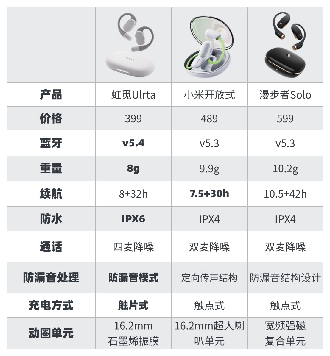 如今,开放式耳机正逐渐取代入耳式耳机成为主流。随着耳机使用频率攀升,开放式耳机因适合长时间佩戴的舒适性脱颖而出,各大耳机厂商也纷纷推出新品。面对琳琅满目的选择,不少人陷入了挑选困境。所以今天带来了三款开放式耳机的测评体验,分别是虹觅Ultra,倍思Eli,漫步者Comfo Solo。