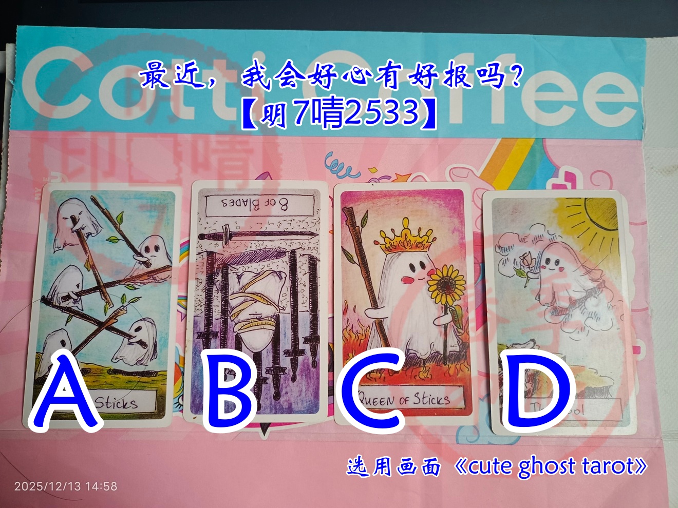 选用画面:1、咖啡纸杯套;2、《cute ghost tarot》