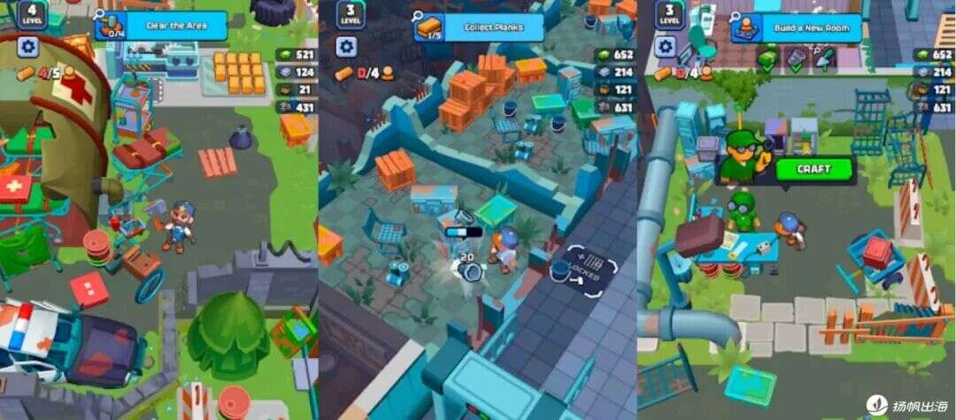 从玩法角度分析,《Lost Prison-Shelter Survival》结合了街机、放置、建造、探索等多种要素,操作模式和《My Perfect Hotel》一样,玩家操控角色游走在各个场景,角色会自动进行采集、清理、建造等一系列工作。不过,和《My Perfect Hotel》不同的是,《Lost Prison-Shelter Survival》增加了丰富的系统和场景,除了进度系统之外,还有收集系统、升级系统等。场景上也不局限于监狱,随着游戏的推进,玩家还能去监狱之外更远的地方收集物品,每个区域都有不同的神秘物品可供解锁。与此同时,玩家在“野外”不仅需要通过打造武器和设备、解锁技能等方式保证生存,同时还可以“发展”,发展目标包括但不限于监狱、监狱之外的世界、角色等。