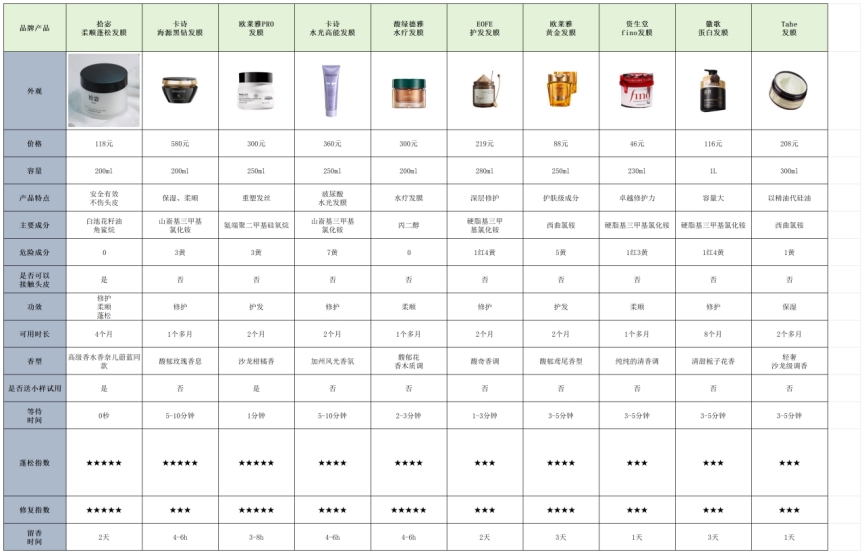 (以下是我经手测评过的发膜产品)