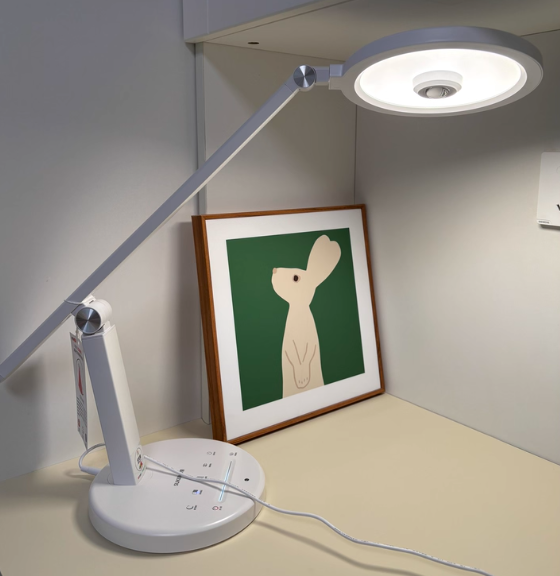 在功能配置上,它走的是极简路线,没有复杂的智能系统,更强调可靠性与易用性。灯体采用多段式灯杆结构,可自由调节高度和照射角度,适应不同坐姿和桌面布局。圆形底座稳固,占用空间不大,旋钮式无极调光操作直观,老人或孩子也能轻松上手。整体外观以白色系为主,设计简洁耐看,但功能层面较为基础,仅提供亮度调节,更适合追求耐用、省心、不需要复杂功能的家庭使用。