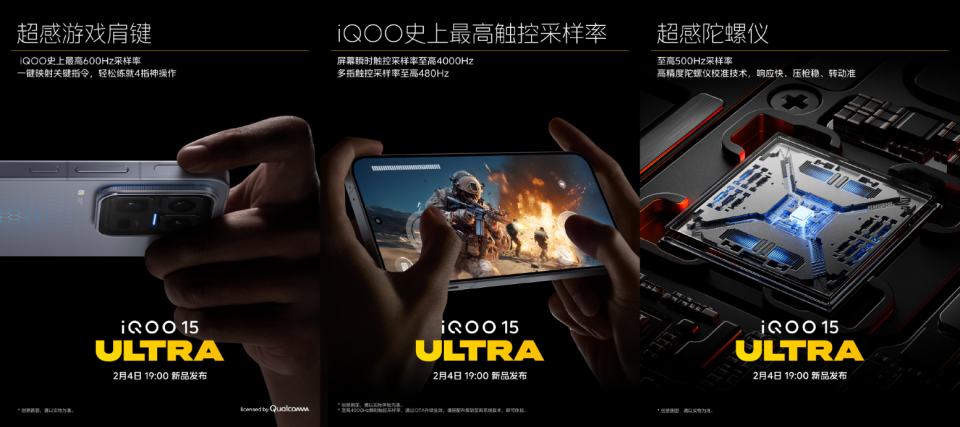 同时,该机还首发超感触控肩键,拥有行业领先600Hz肩键触控采样率,搭配双独立控制芯片,指令单独传输,实现极速响应,还iQOO首发「战鼓大师同轴双扬」+iQOO首款「杜比全景声」认证和战锤MAX双轴振感马达。该机将内置7400mAh大电池搭配100W有线快充,影像上搭载全焦段三摄并融合蔡司色彩调校。根据官宣显示,iQOO 15 Ultra还是该品牌首款内置主动散热风扇的性能旗舰,同时,还实现了物理触控肩键的回归。